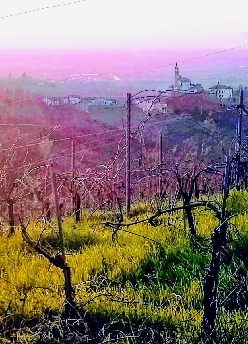 In questa immagine vi mostro in primo piano un vigneto aziendale in cui si svolge l'inizio delle lavorazioni di potatura.